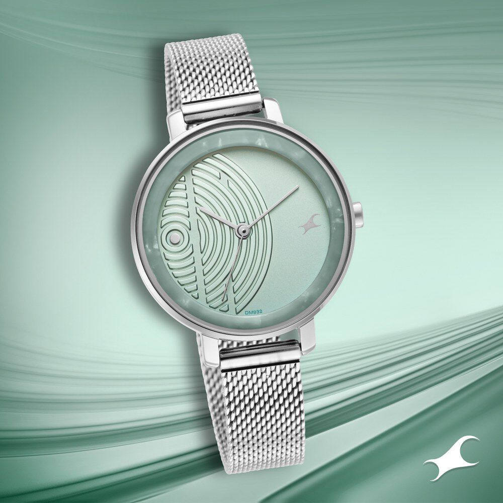Fastrack Vyb Siren Quartz Analog Green Dial Metal Strap Watch for Girls FV60004KM02W
