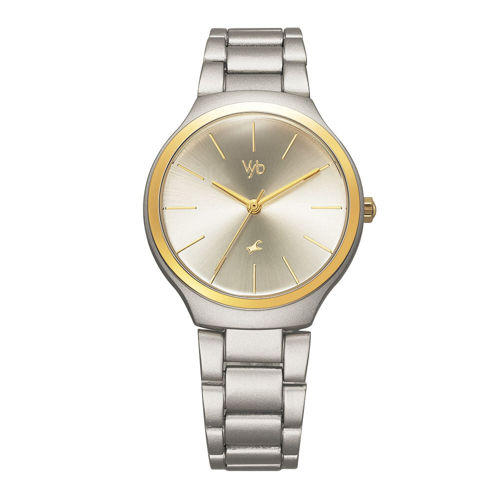 Fastrack Vyb Slayer Quartz Analog Golden Dial Metal Strap Watch for Girls FV60008YM01W