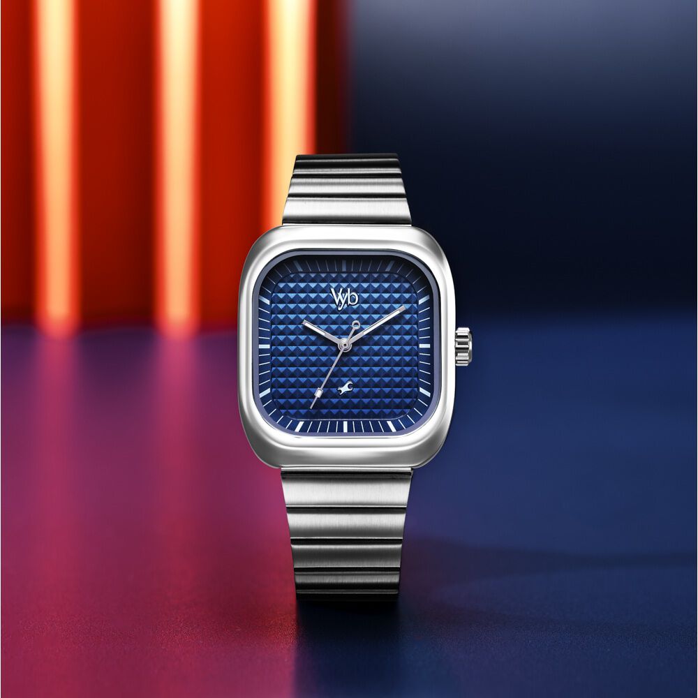 Fastrack Vyb Maverick Quartz Analog Blue Dial Silver Metal Strap Watch For Guys FV30001SM01W