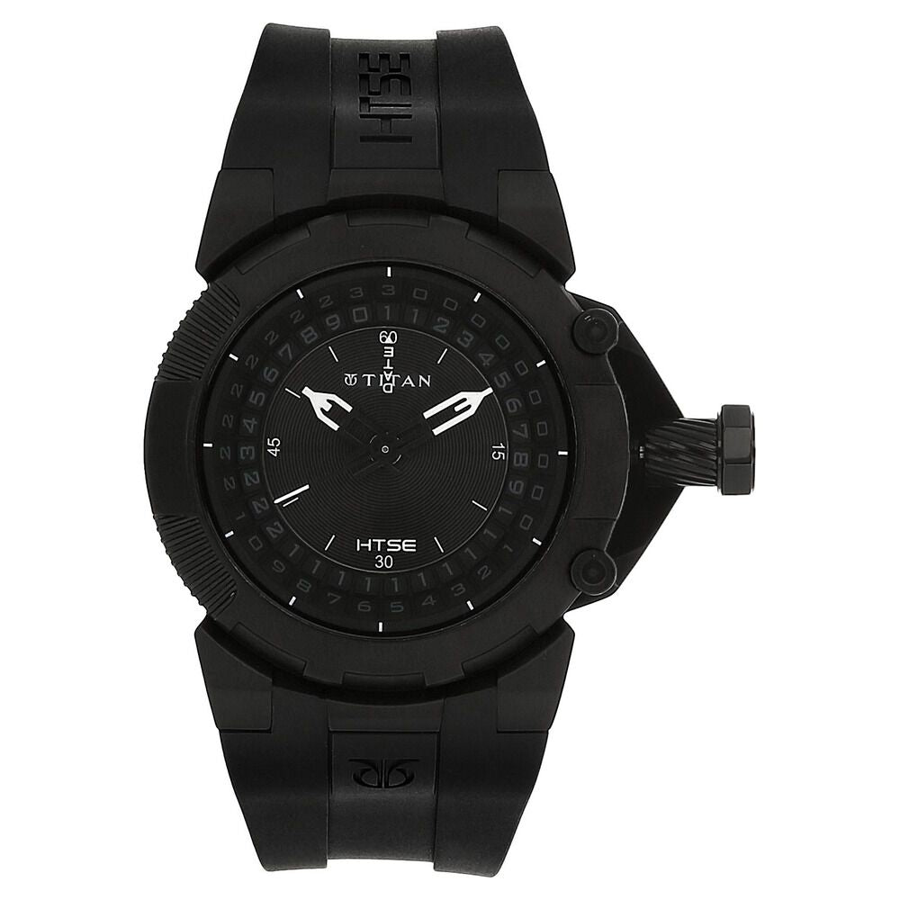Titan Quartz Analog Solar Black Dial Plastic Strap Watch for Men-NE1539NP01