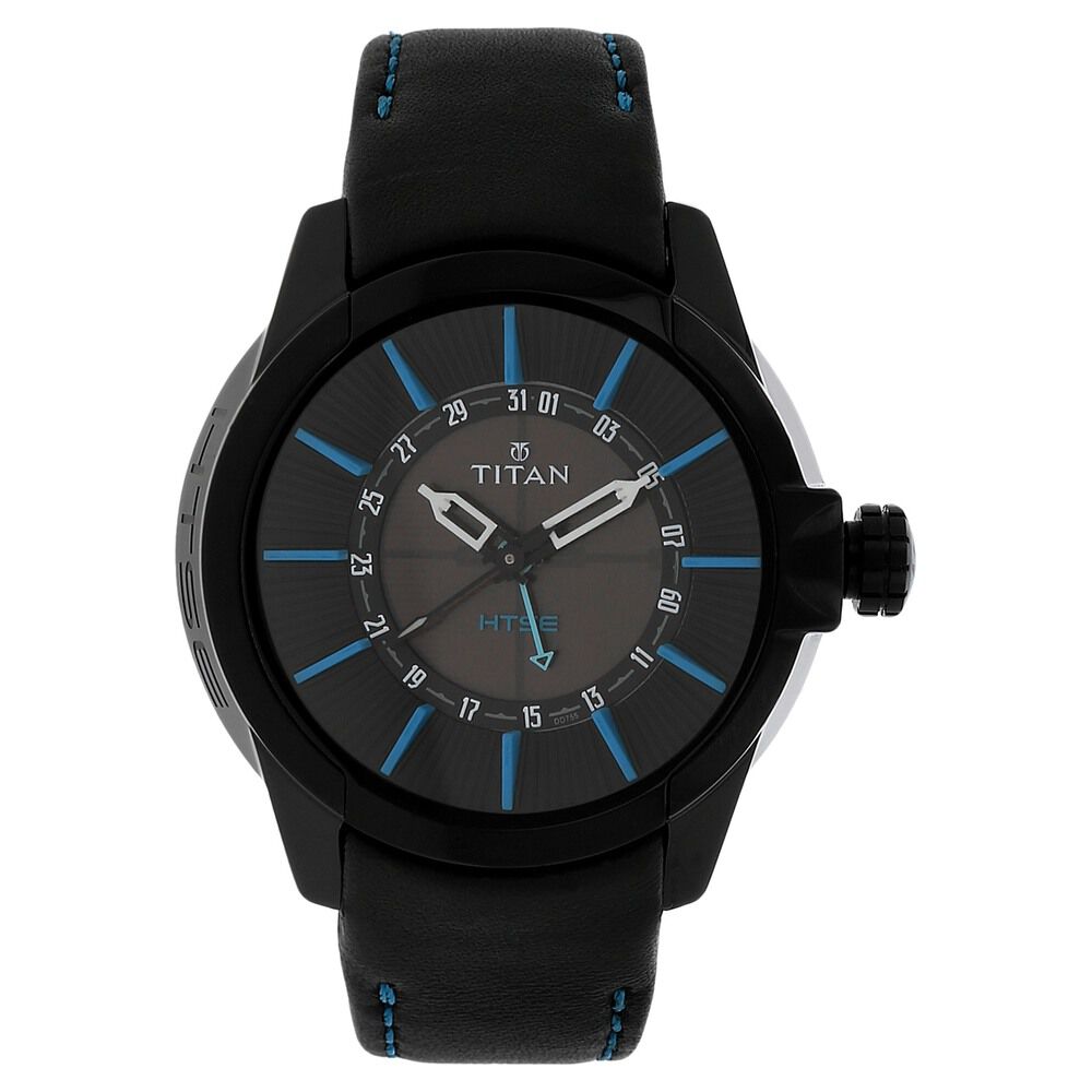 Titan Solar Powered Black Dial Quartz Leather Strap watch for Men-1629NL02