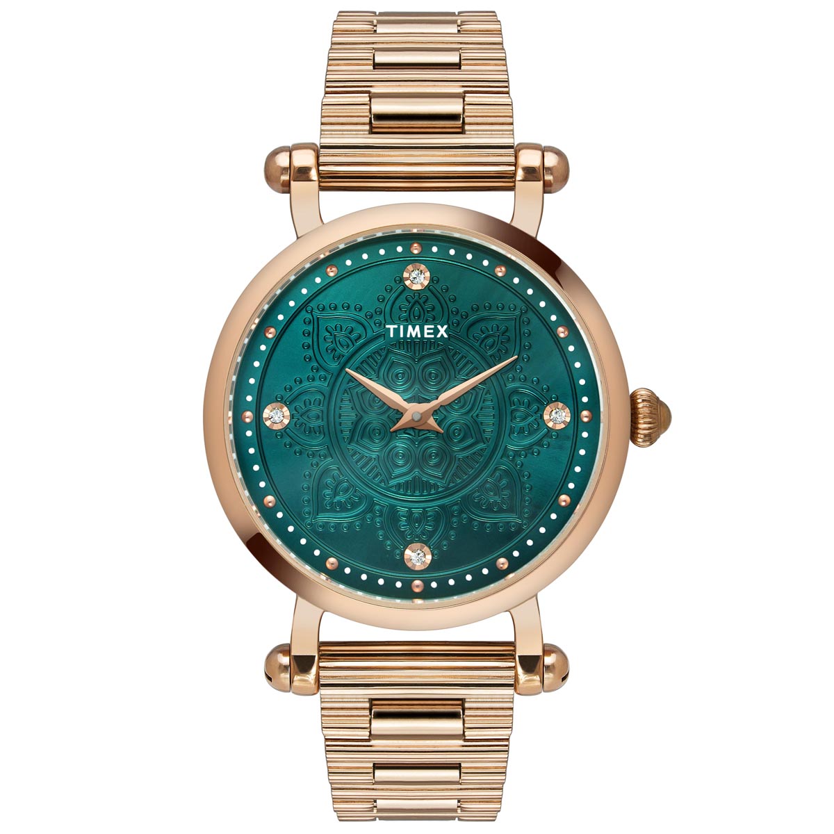Timex Fria Women's Green Dial Round Case 2 Hands Function Watch -TWEL14303