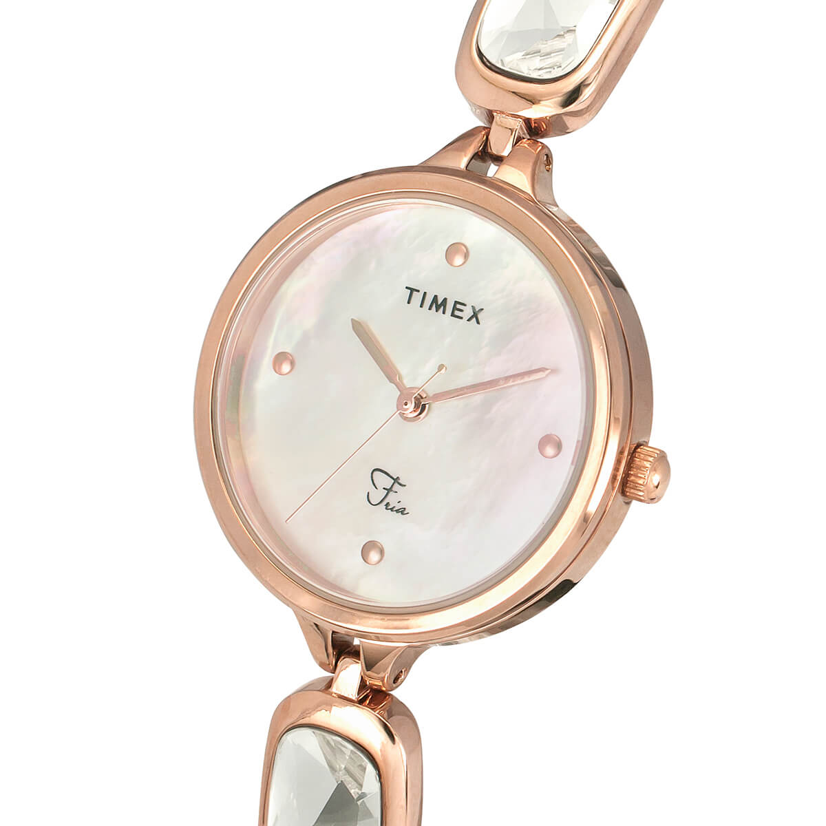 Timex Fria Women's Mother Of Pearl Dial Round Case 3 Hands Function Watch -TWEL15901