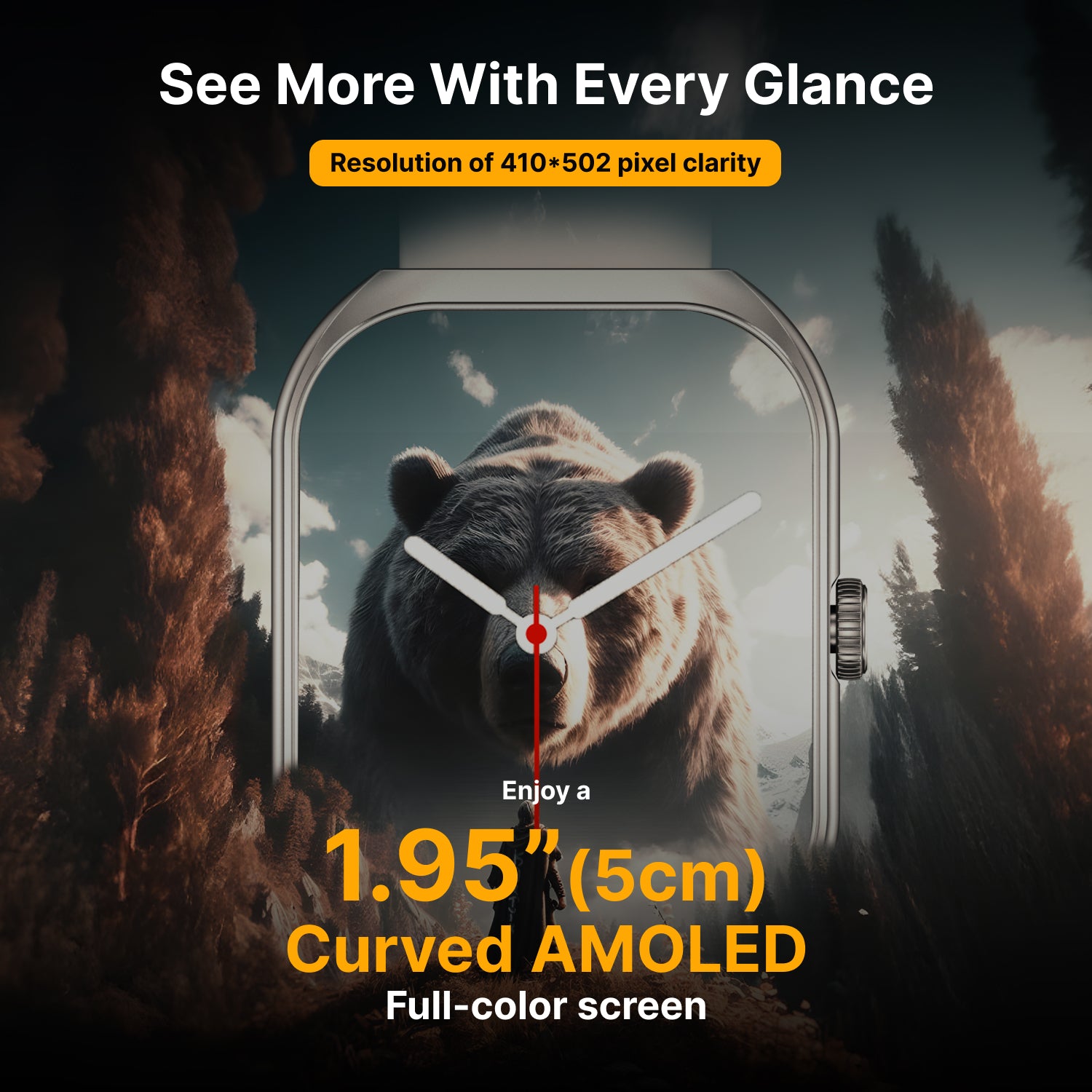Timex Smart Progen 1.95" (4.95 cm) Curved AMOLED Display with Functional Crown and BT Calling Smartwatch For Unisex - TWTXW801T