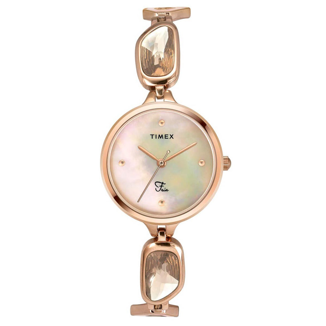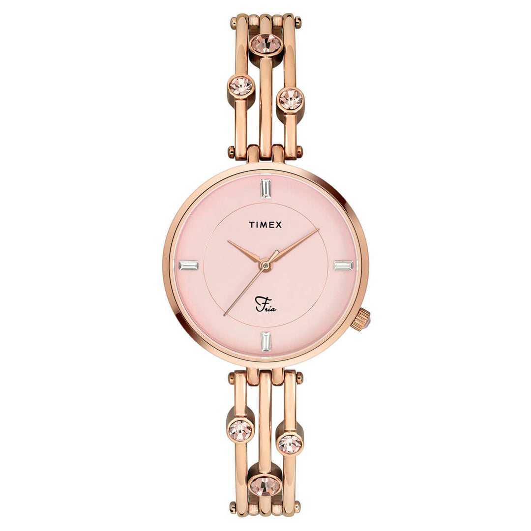 Timex Women Pink Round Analog Brass Dial Watch- TWEL15807