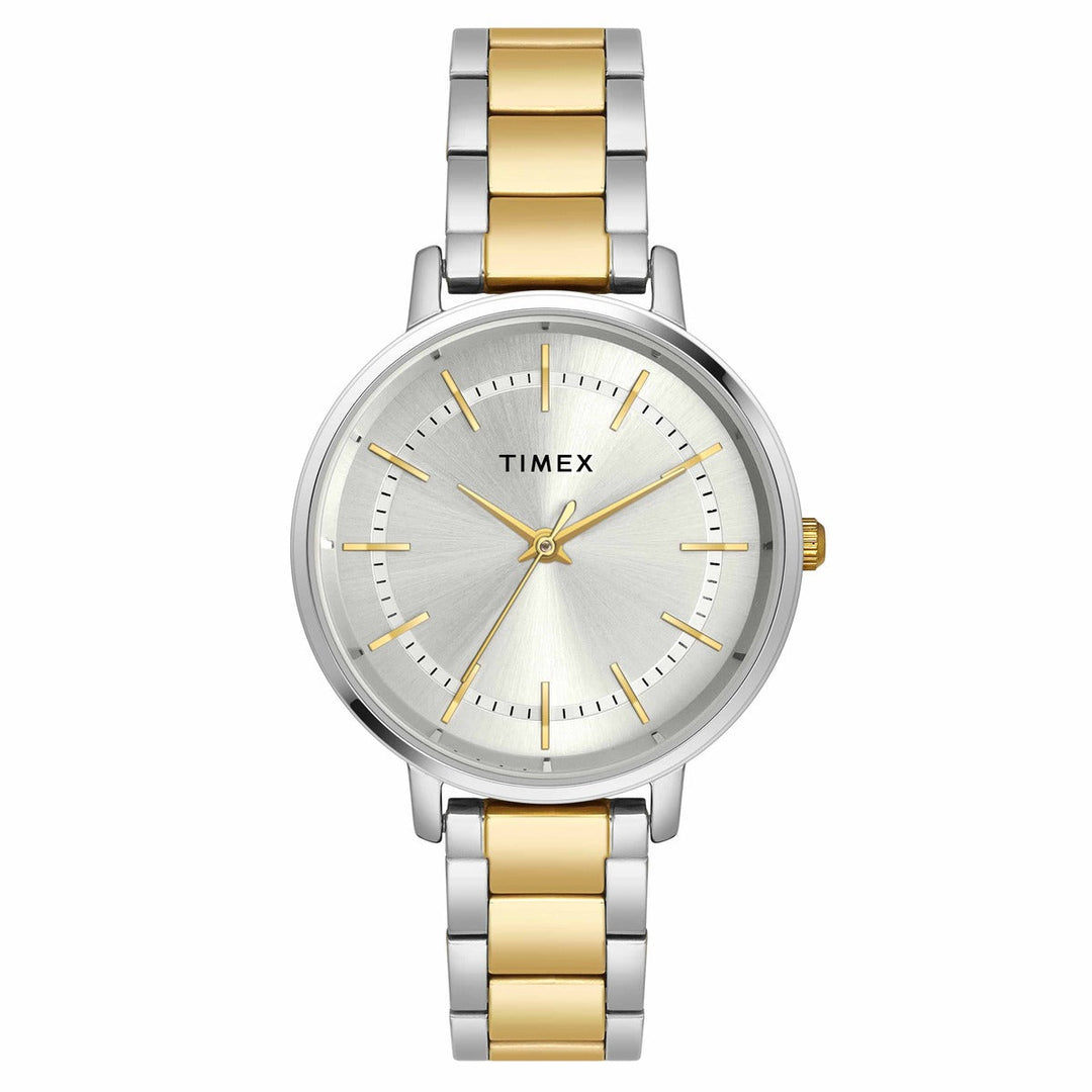 Timex Classics Collection Premium Quality Women's Analog Silver Dial Coloured Quartz Watch, Round Dial With 34mm Case Width - TWEL15805