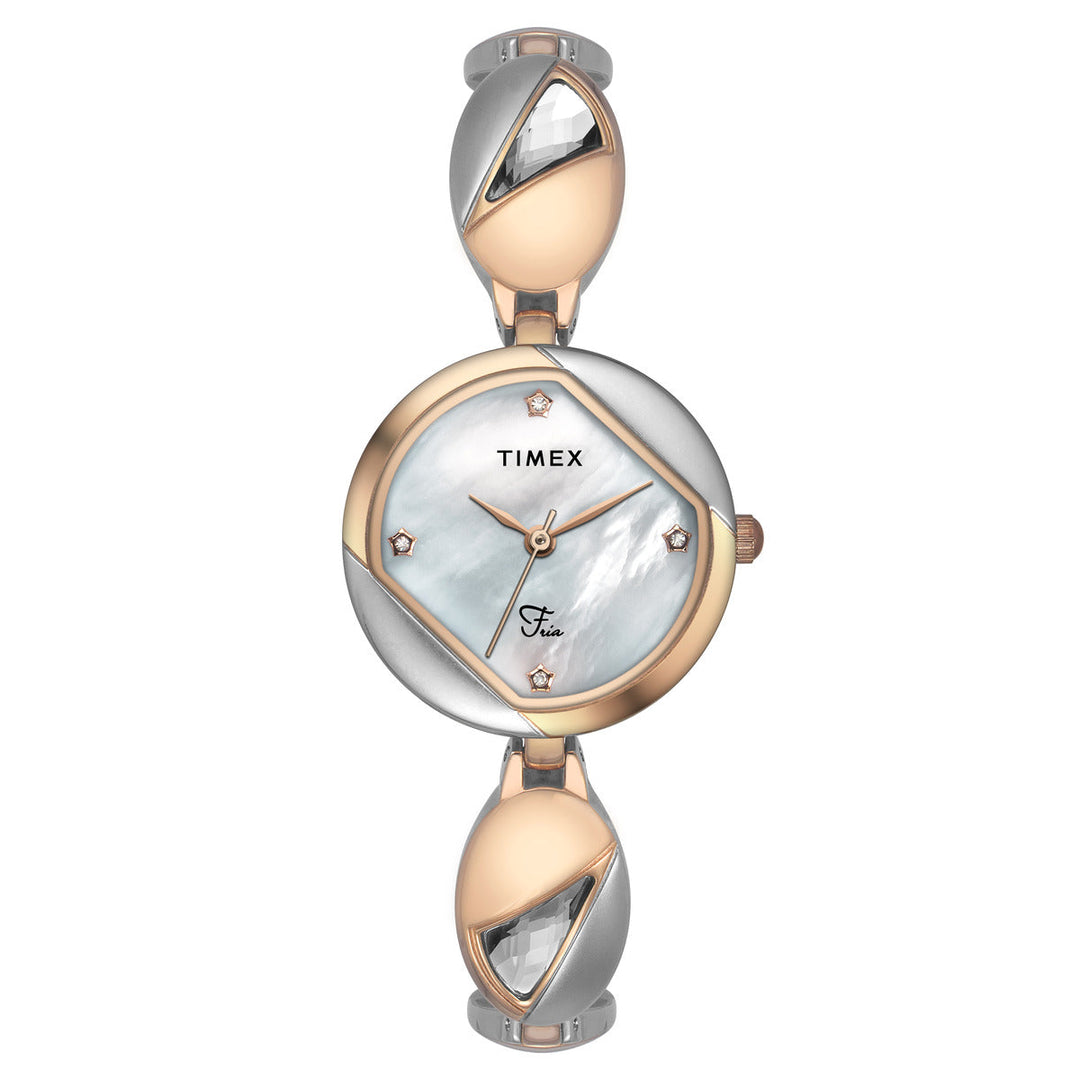 Timex Fria Women's Mother Of Pearl Dial Round Case 3 Hands Function Watch -TWEL16500