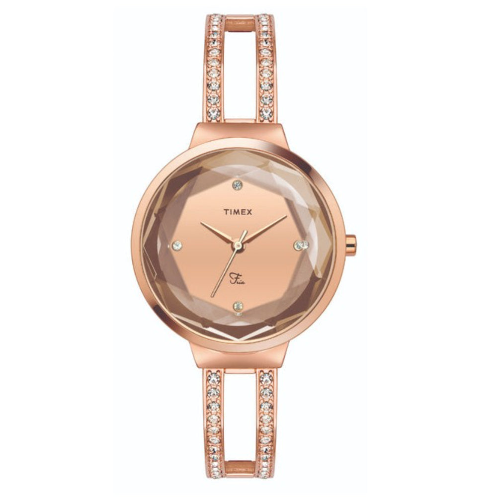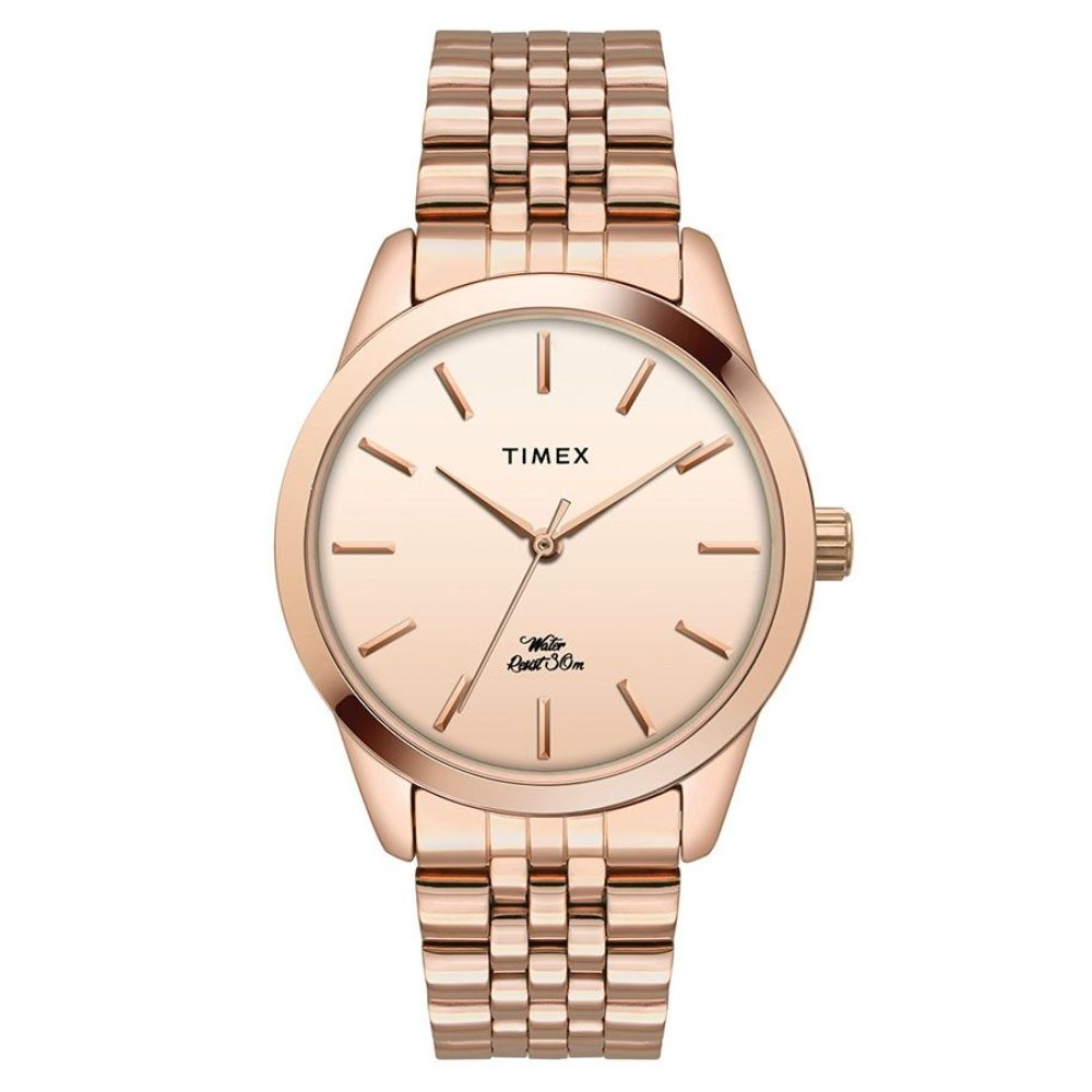 Timex Fashion Collection Premium Quality 3 Hands Women Analog Rose Gold Dial Coloured Quartz Watch, Round Dial With 34 Mm Case Width - TWEL128SMU05