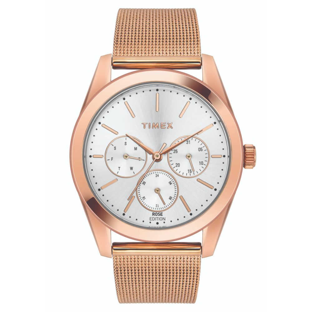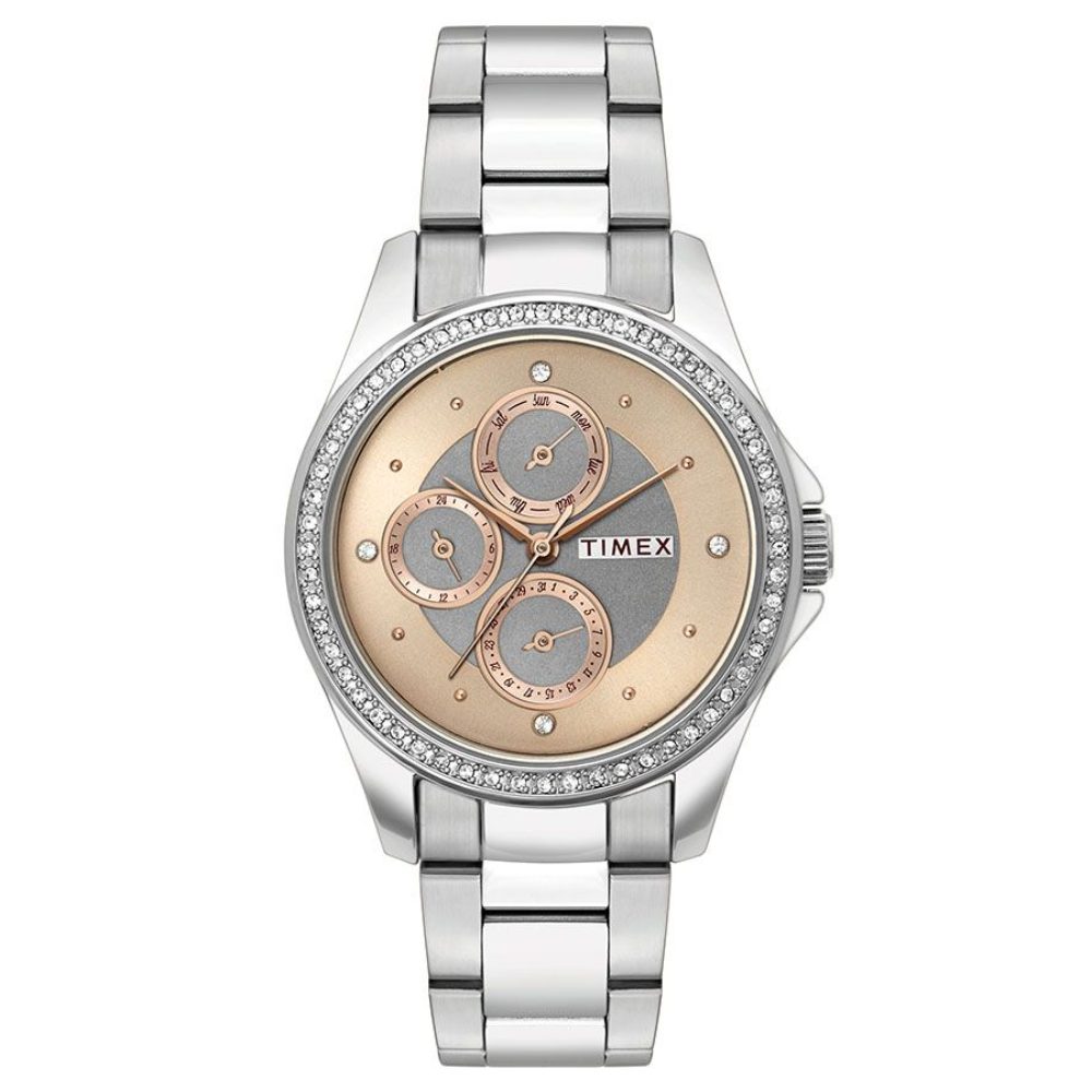 Timex E Class Women's Rose Gold Dial Round Case Multifunction Function Watch -TWEL13105