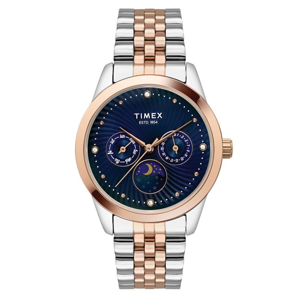 Timex E Class Women's Blue Dial Round Case Multifunction Function Watch -TWEL13107