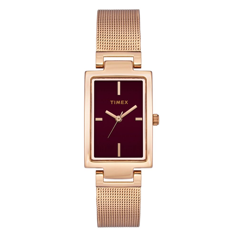 Timex Fashion Women's Burgundy Dial Rectangle Case 3 Hands Function Watch -TWEL11310
