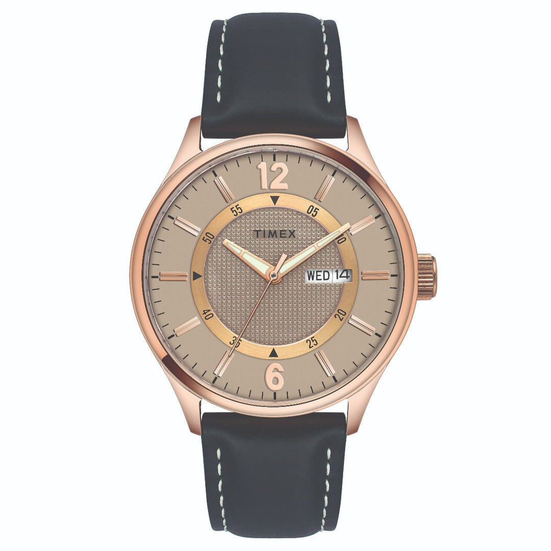 Timex Men Analog Black Round Brass Dial Watch- TWEG19919