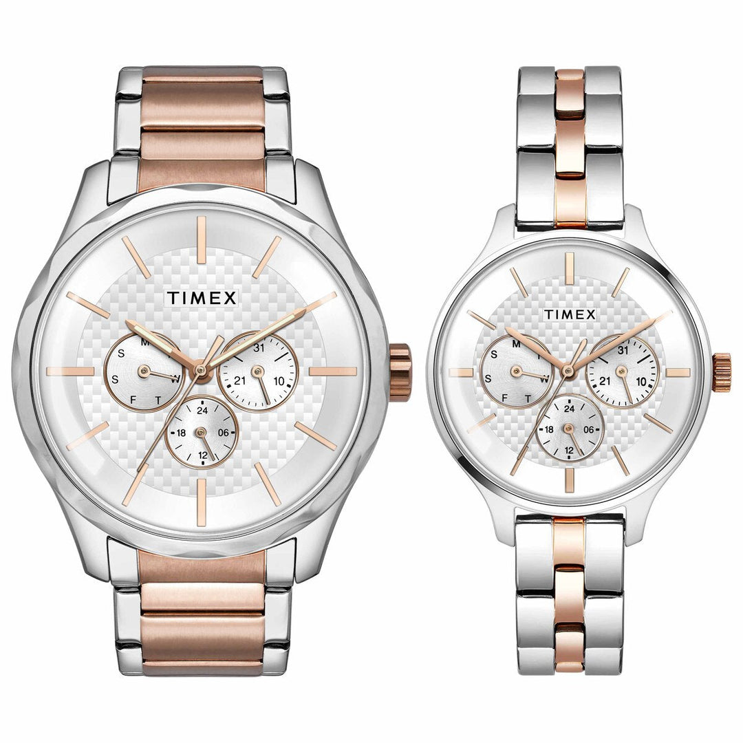 Timex Fashion Collection Premium Quality Multifunction Pair's Analog Silver Dial Coloured Quartz Watch, Round Dial With 43 Mm Case Width - TW00PR292