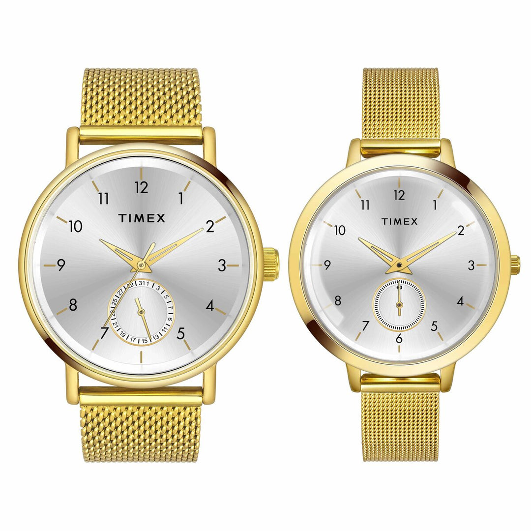 Timex Classics Pairs Silver Dial Round Case 3 Hands Function Watch -TW00PR276