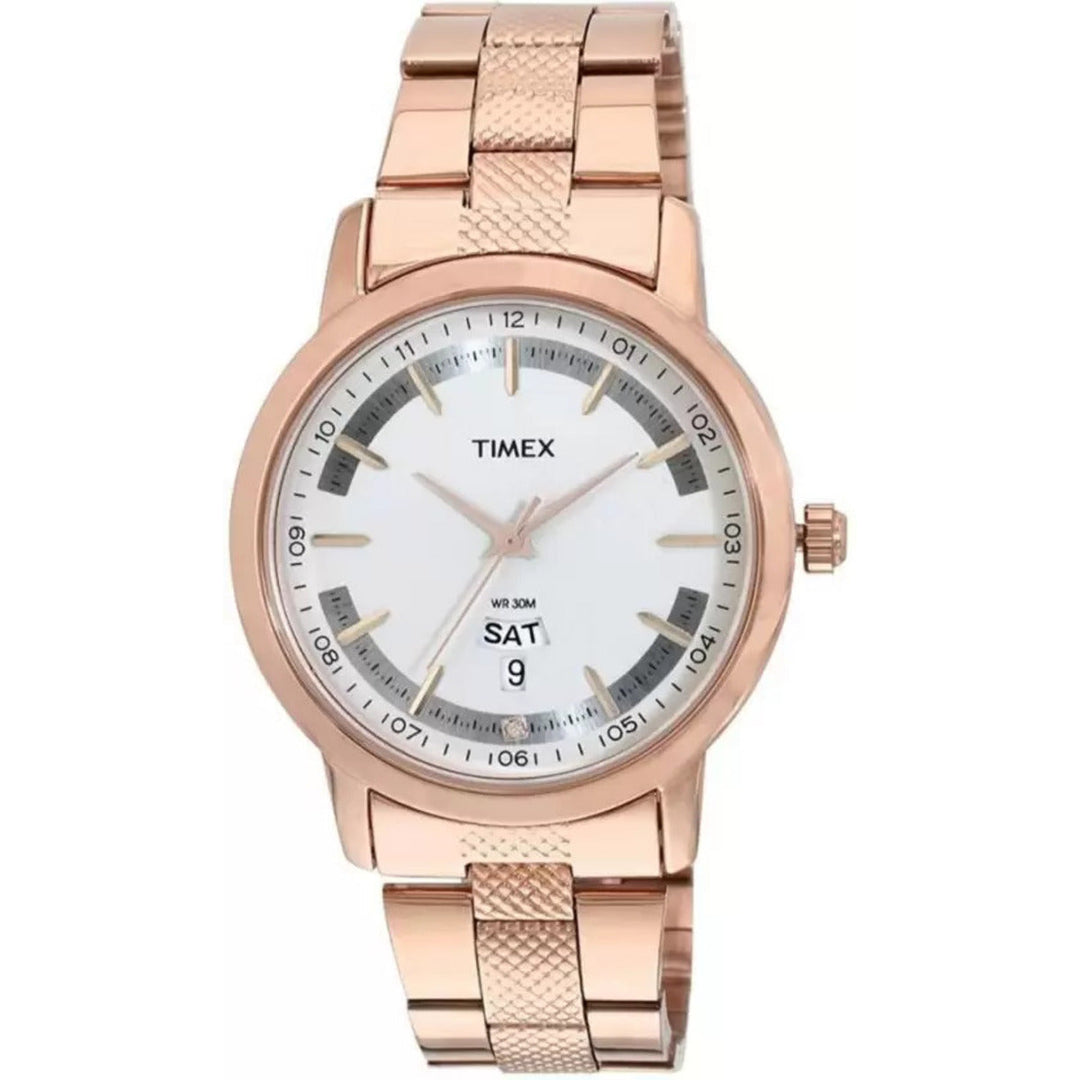 Timex Empera Pairs Silver Dial Round Case Day-Date + 3 Hands Function Watch -TW00PR285