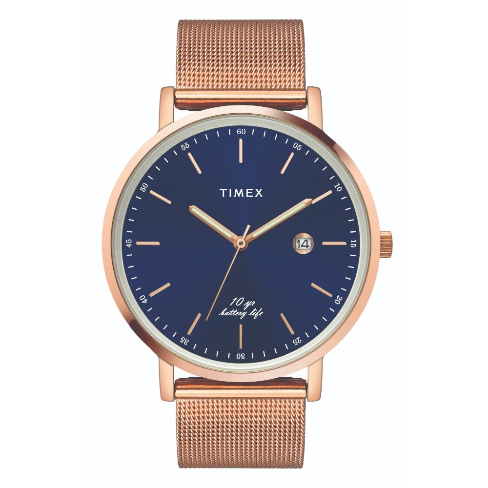 Timex Classics Pairs Rose Gold Dial Round Case Day Date/3 Hands Function Watch -TW00PR265