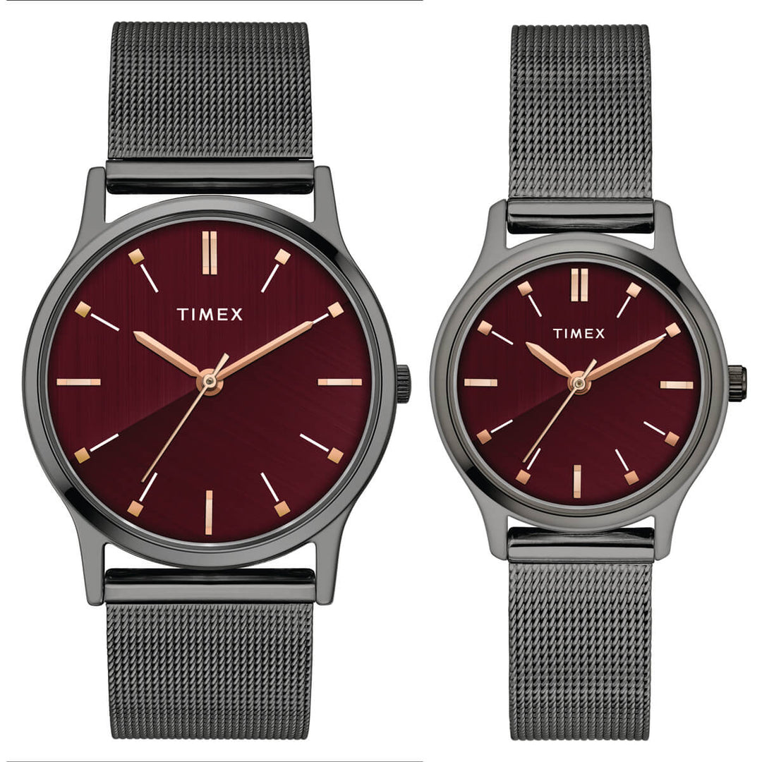 Timex Classics Pairs Red Dial Round Case 3 Hands Function Watch -TW00PR272