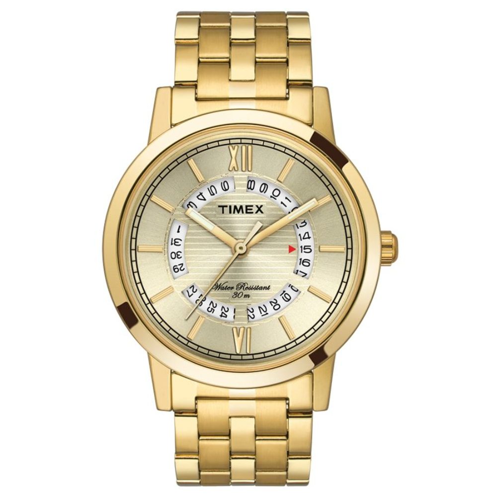 Timex Classics Men's Quartz Analog Champagne Dial Round Case Date Function Watch -TW000T126