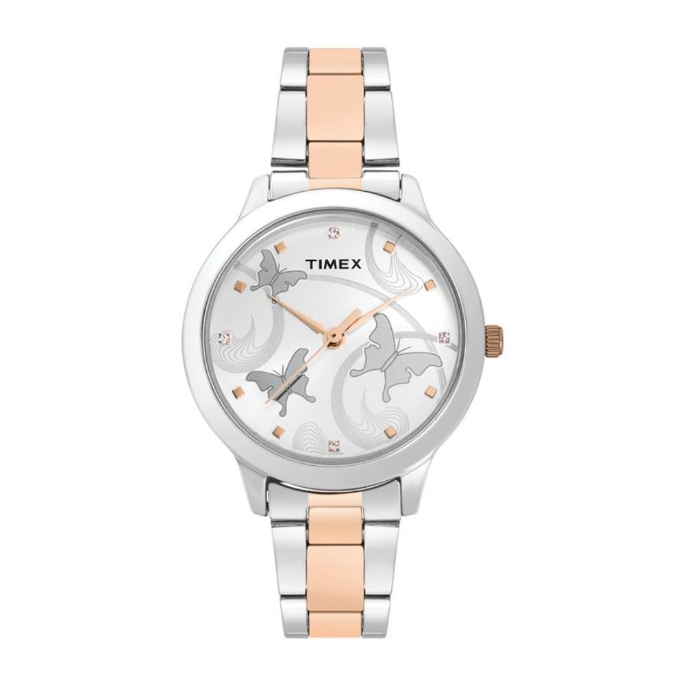 Timex Fashion Women's Silver Dial Round Case 3 Hands Function Watch -TW000T607