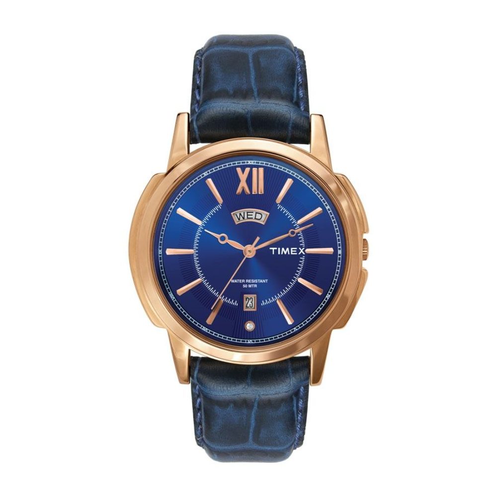 Timex Empera Men's Blue Dial Round Case Day Date Function Watch -TW000U310