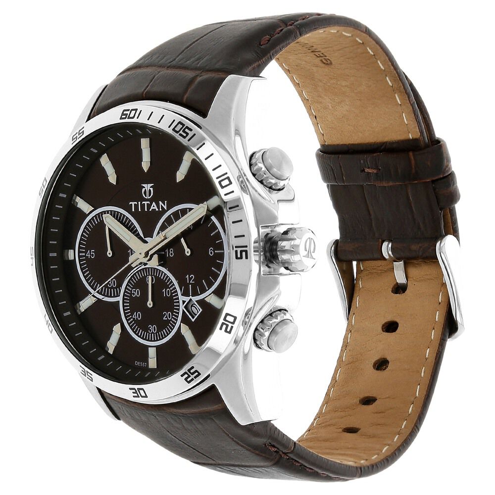 Titan Classic Brown Dial Chronograph Leather Strap watch for Men-NH90022SL01E