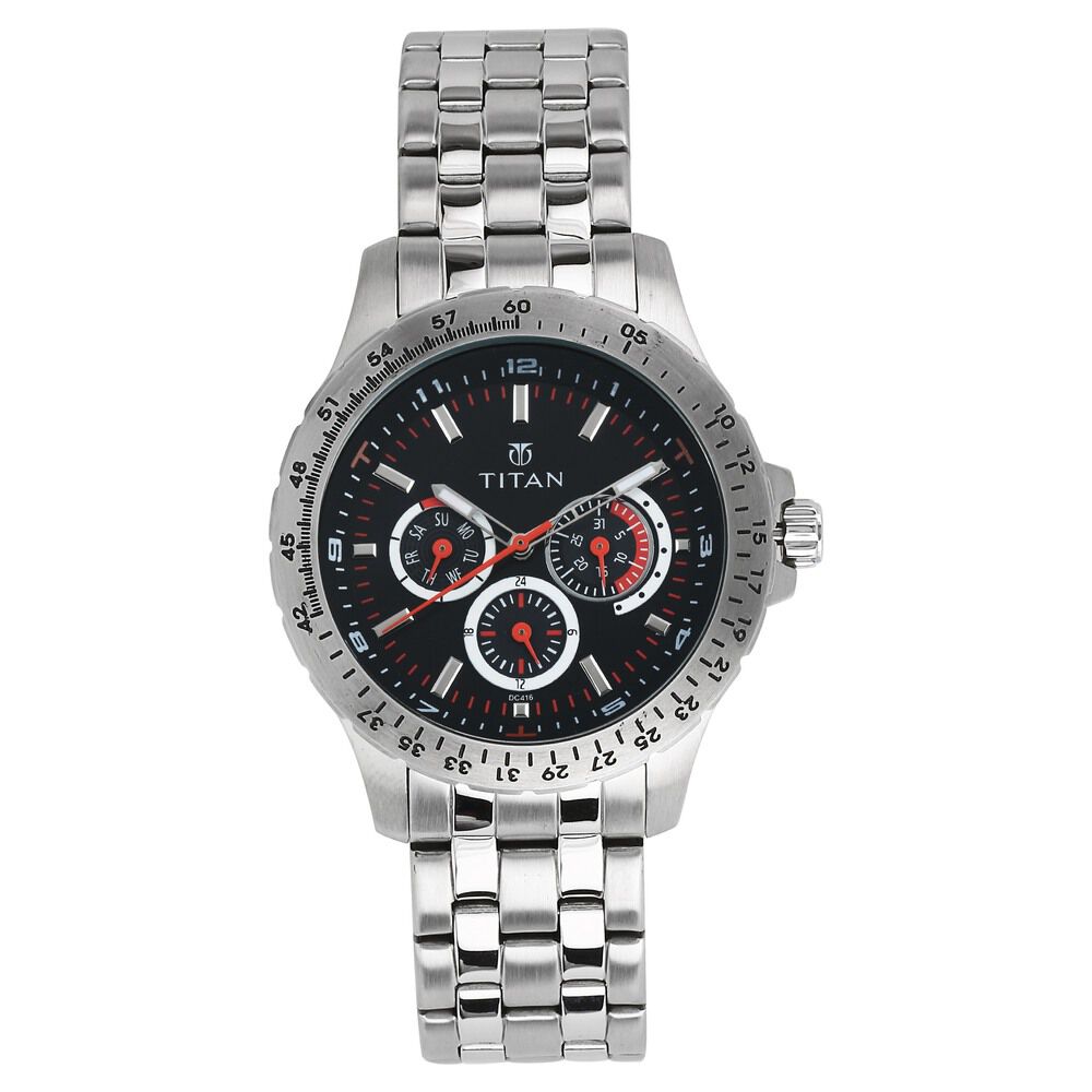 Titan Octane Black Dial Quartz Multifunction Metal Strap watch for Men-9446SM03J