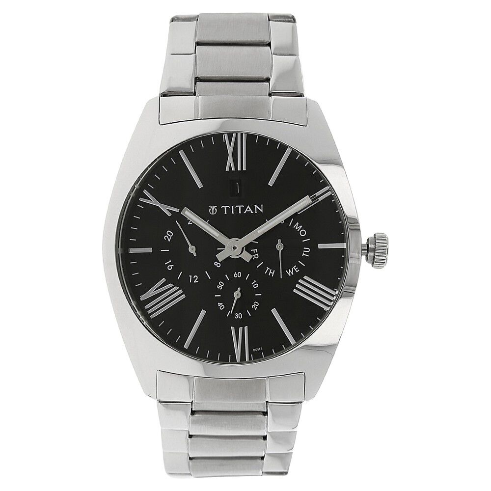 Titan Quartz Analog Black Dial Metal Strap Watch for Men-NJ9476SM02