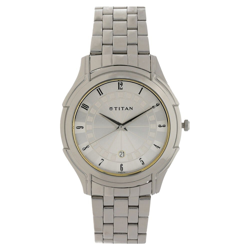 Titan Quartz Analog with Date Silver Dial Stainless Steel Strap Watch for Men-NE1558SM01