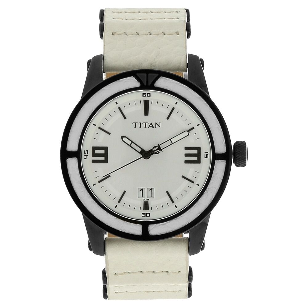 Titan Quartz Analog with Date White Dial Metal Strap Watch for Men-NB9413NH01