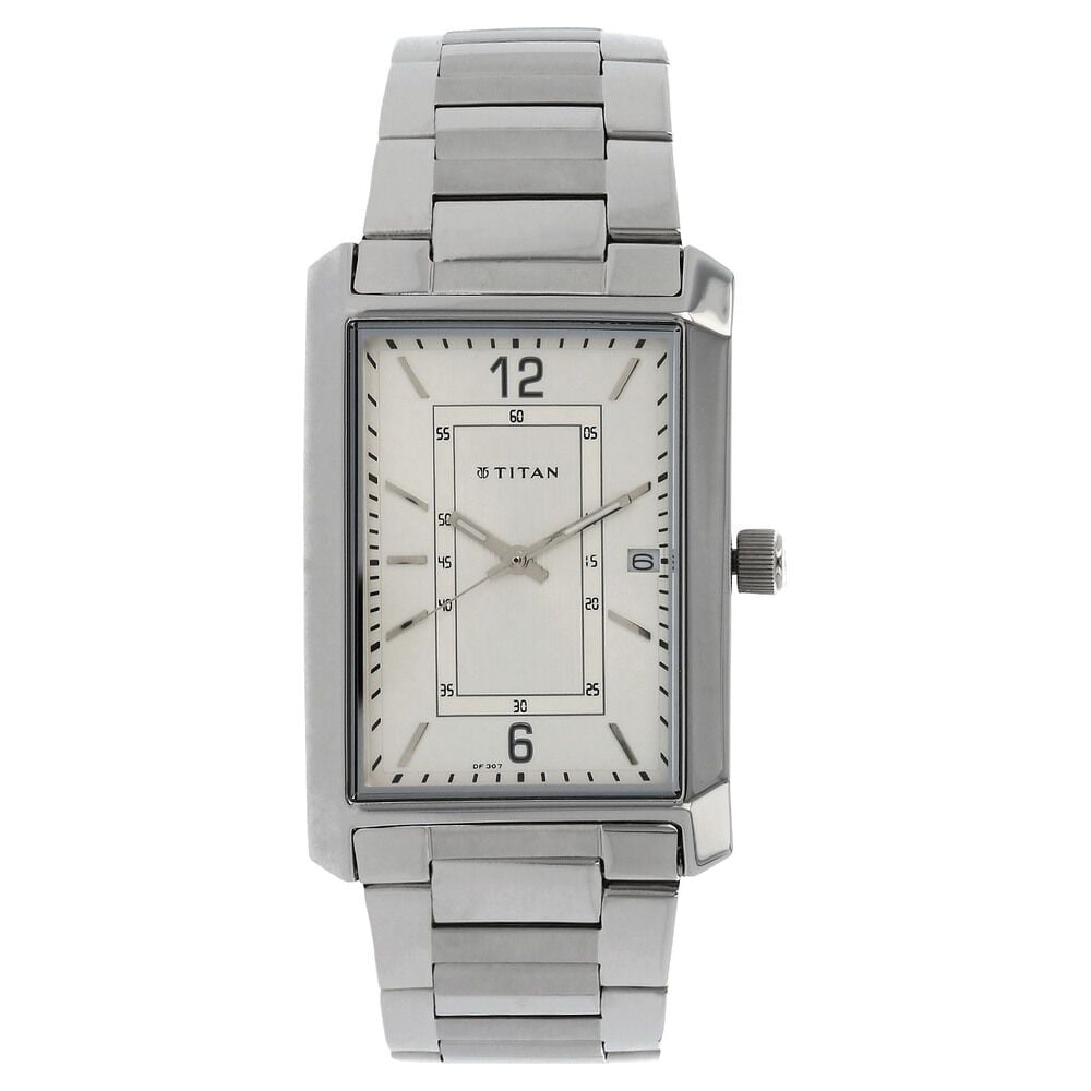 Titan Quartz Analog with Date White Dial Stainless Steel Strap Watch for Men-NK1697SM01