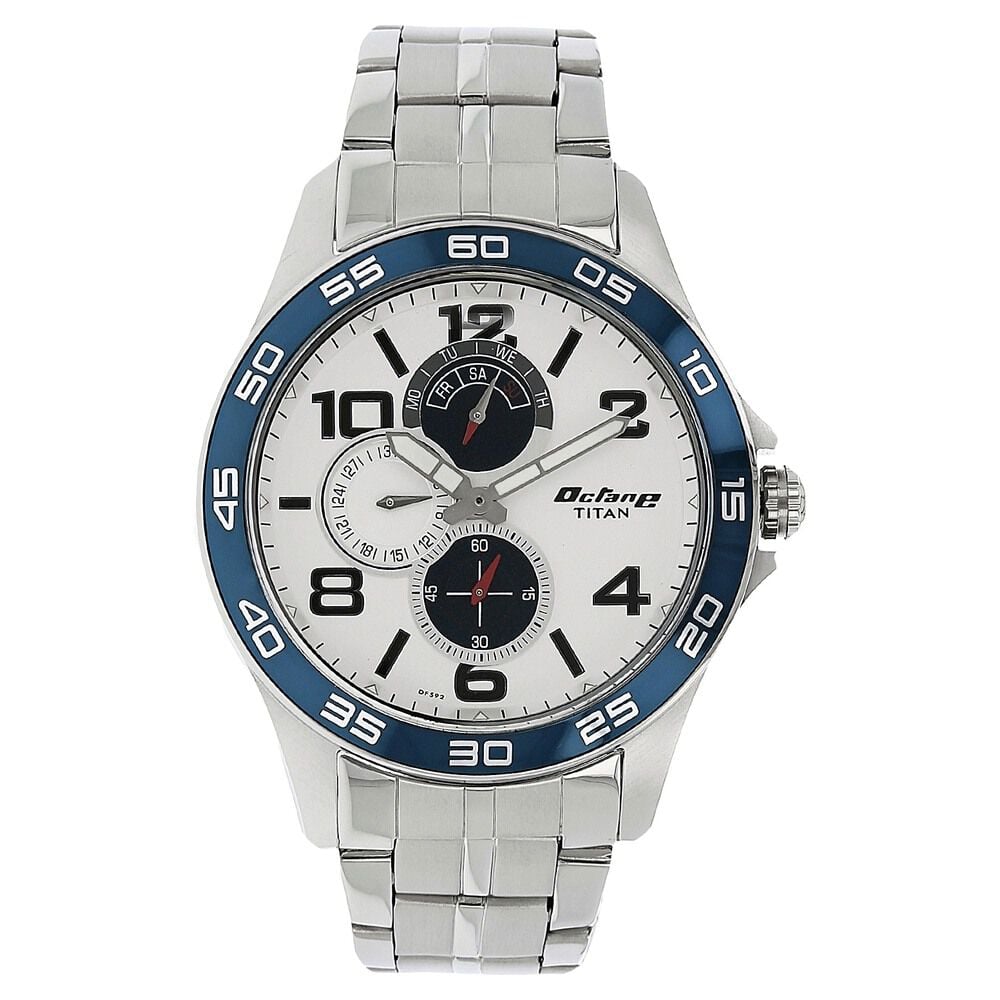 Titan Quartz Analog with Day and Date Silver Dial Metal Strap Watch for Men-NL1702KM01