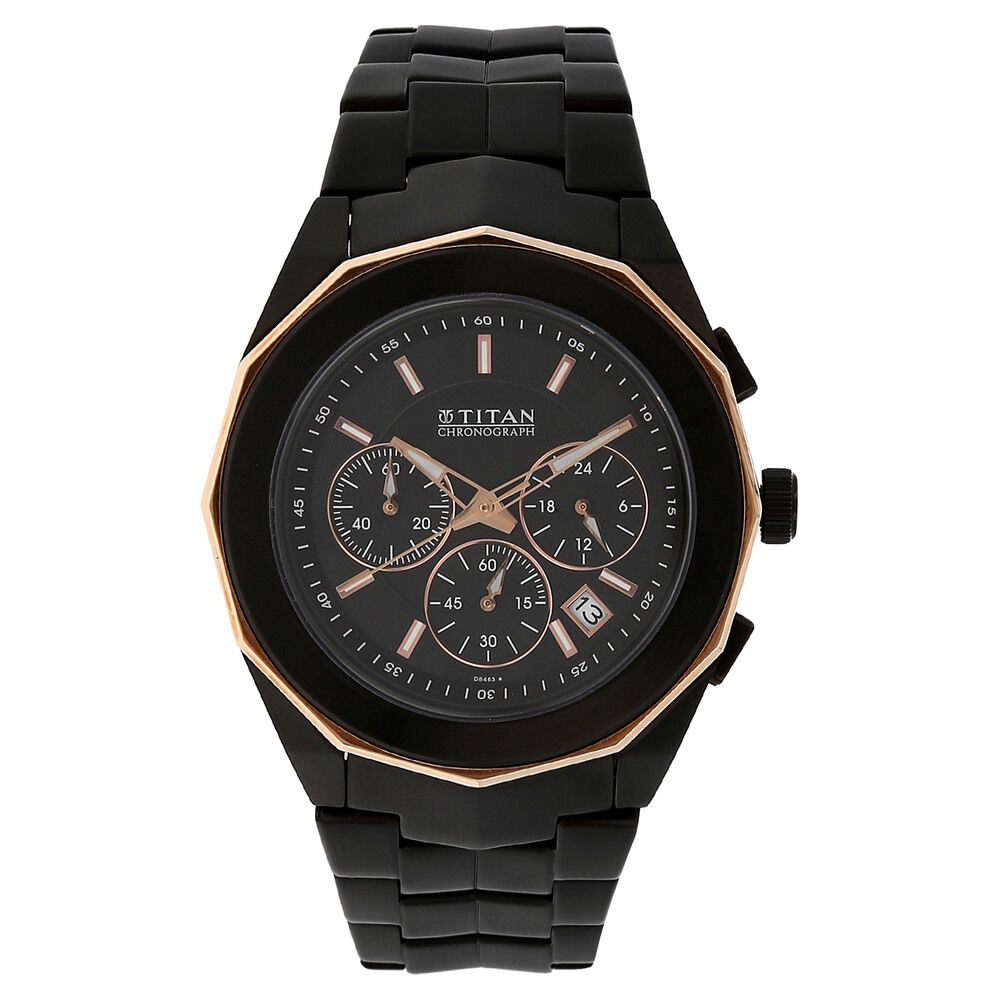 Titan Quartz Chronograph Black Dial Stainless Steel Strap Watch for Men-NE1563KM04