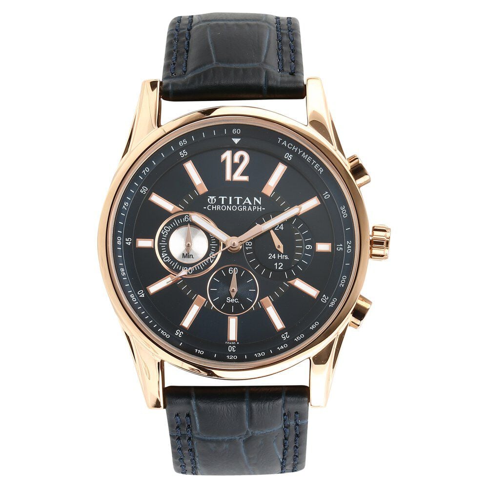 Titan Quartz Chronograph Blue Dial Leather Strap Watch for Men-9322WL05