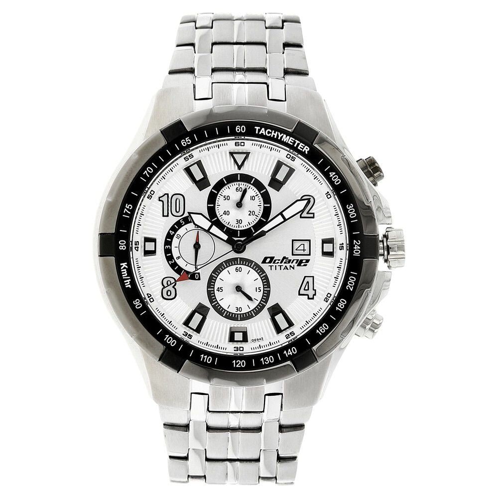 Titan Quartz Chronograph Silver Dial Stainless Steel Strap Watch for Men-90045KM01J