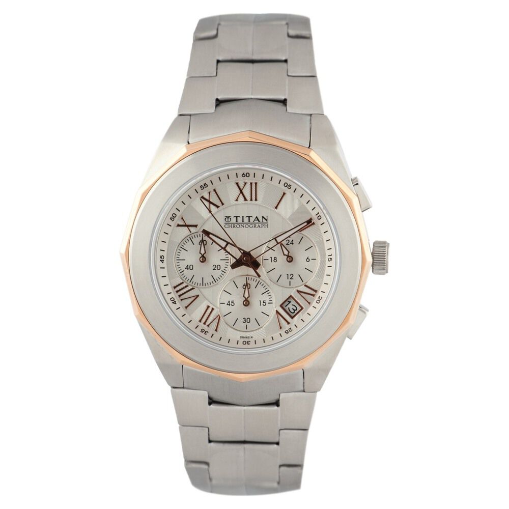 Titan Quartz Chronograph Silver Dial Stainless Steel Strap Watch for Men-NE1563KM03