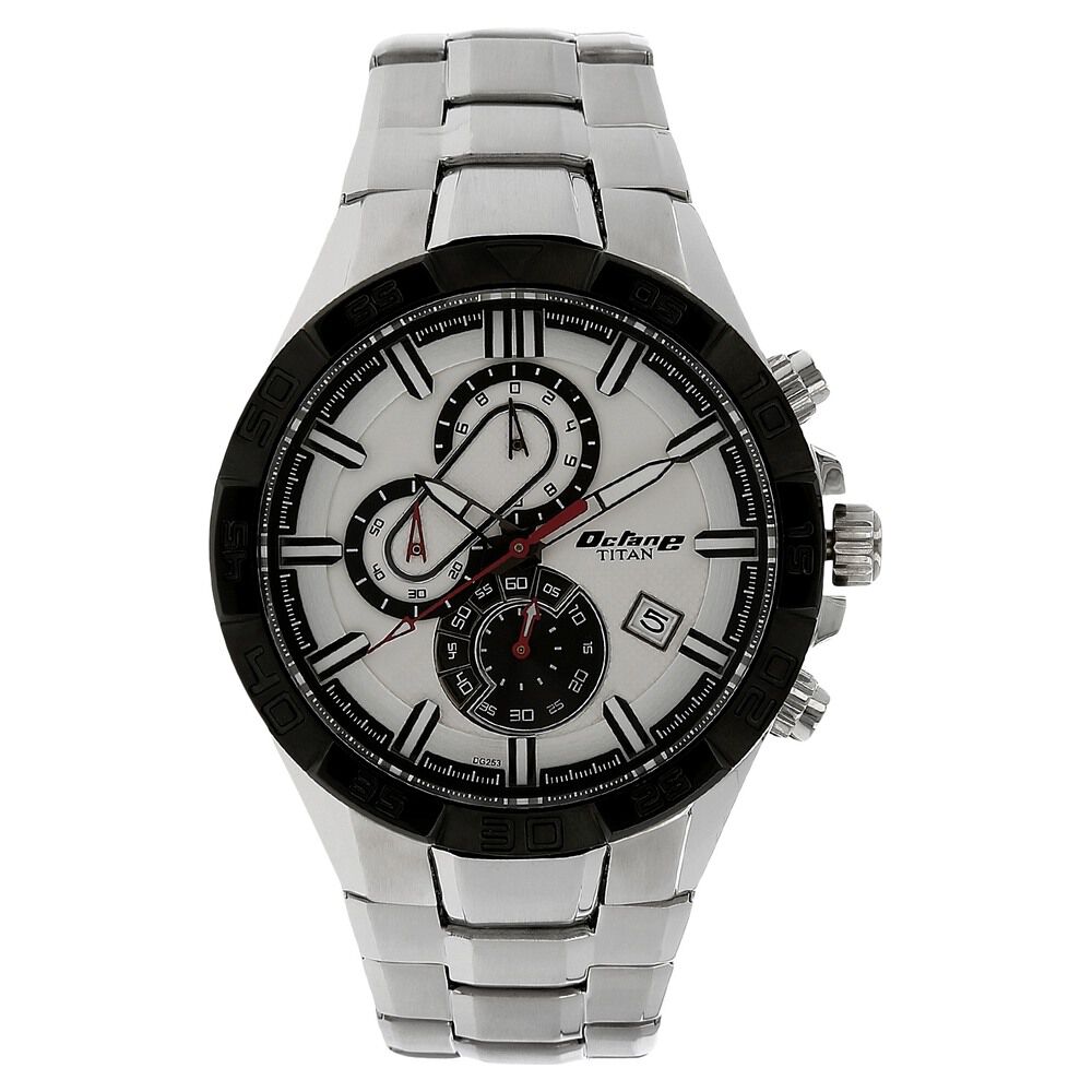 Titan Quartz Chronograph White Dial Stainless Steel Strap Watch for Men-NS90079KM01
