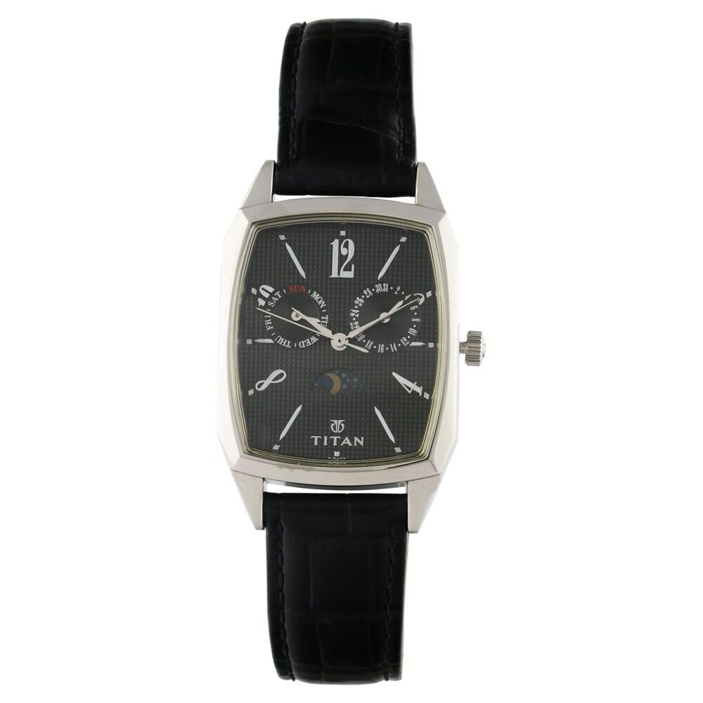Titan Quartz Multifunction Black Dial Leather Strap Watch for Men-1617SL01