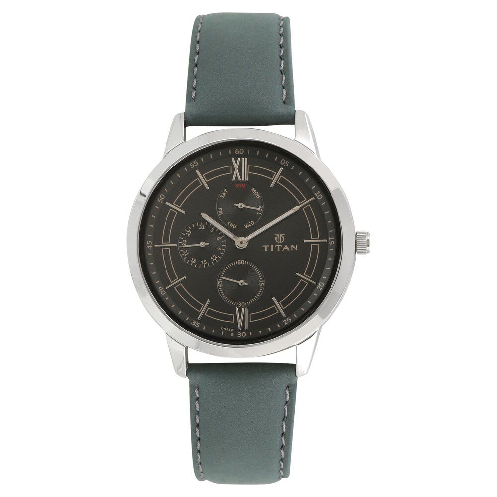 Titan Quartz Multifunction Black Dial Leather Strap Watch for Men-NQ1769SL05