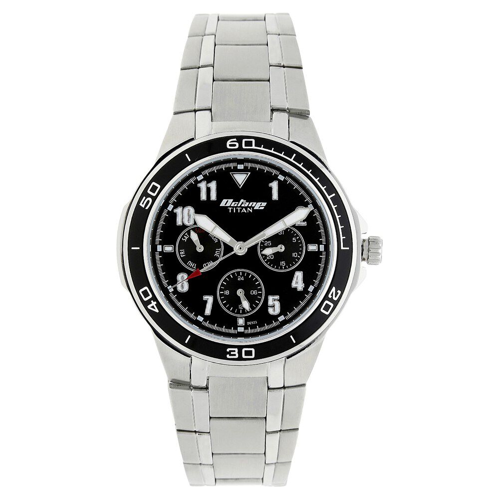 Titan Quartz Multifunction Black Dial Metal Strap Watch for Men-NM90039KM01