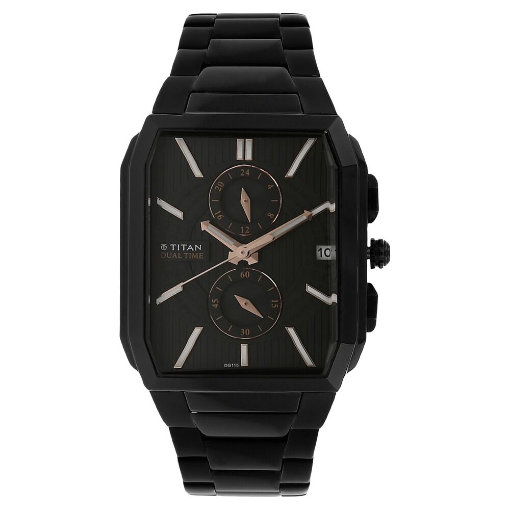 Titan Quartz Multifunction Black Dial Stainless Steel Strap Watch for Men-1719NM01