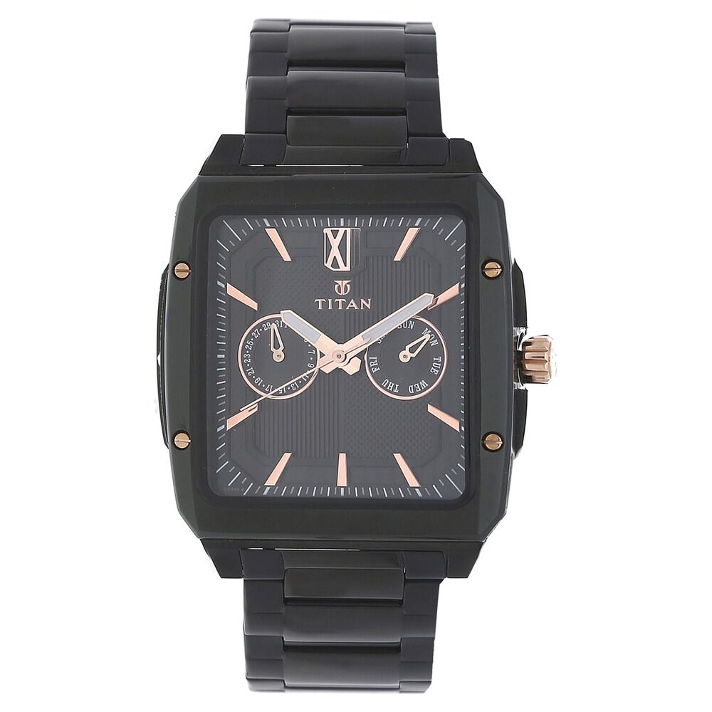 Titan Quartz Multifunction Black Dial Stainless Steel Strap Watch for Men-NJ1689KM02