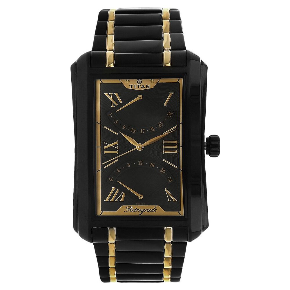 Titan Quartz Multifunction Black Dial Stainless Steel Strap Watch for Men-NJ1694KM02