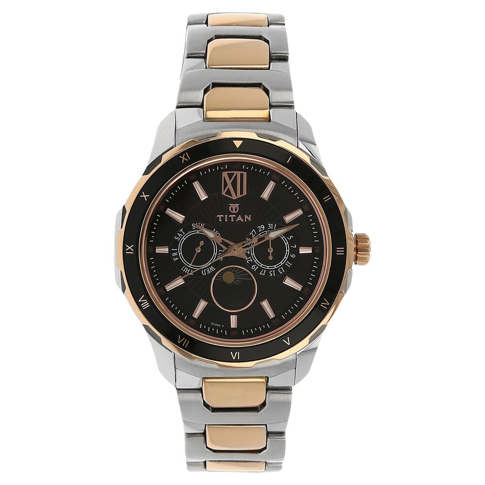 Titan Quartz Multifunction Black Dial Stainless Steel Strap Watch for Men-NK1688KM03