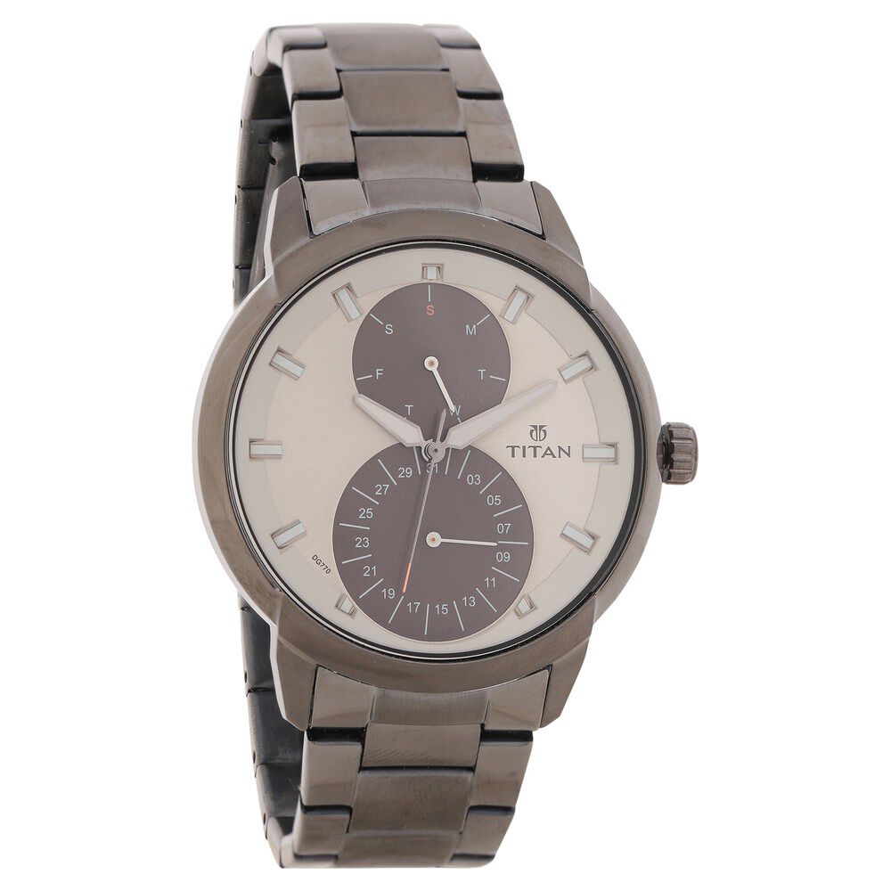 Titan Quartz Multifunction Grey Dial Stainless Steel Strap watch for Men-NS1756QM01