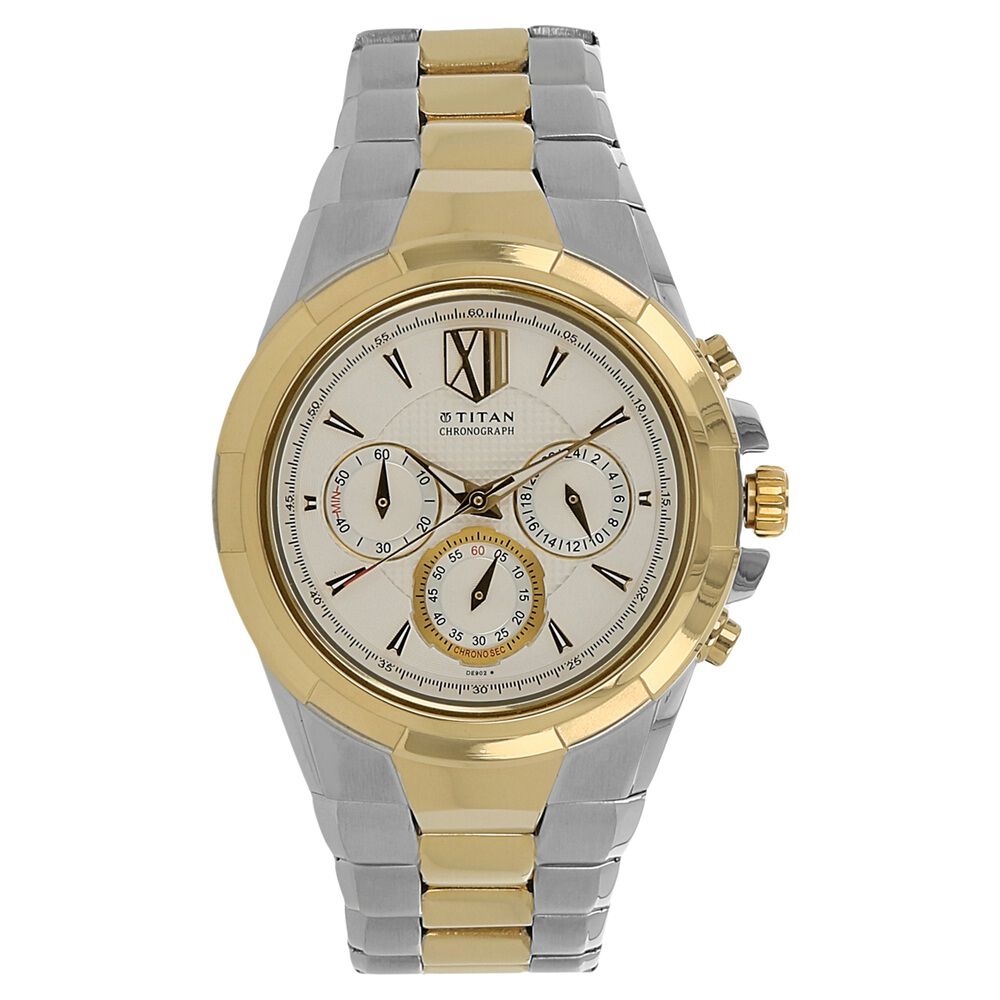 Titan Regal Crest Silver Dial Chronograph Stainless Steel Strap Watch for Men-NK1695BM01