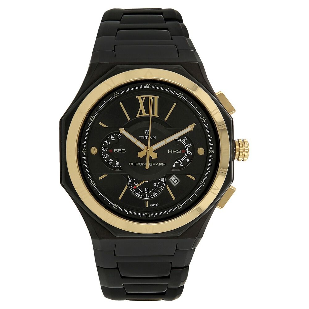 Titan Regalia Rome Black Dial Chronograph Stainless Steel Strap watch for Men-NK1716KM02