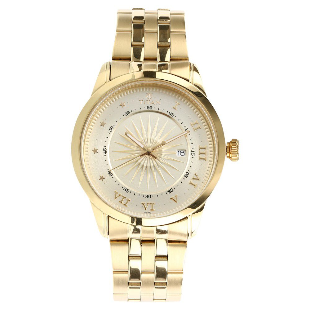 Titan Regalia Sovereign Regalia Sovereign Champagne Dial Analog with Date Stainless Steel Strap Men-NN1752YM02