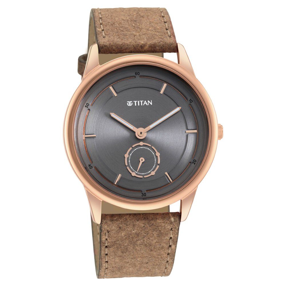 Titan Solidarity Anthracite Dial Analog Leather Strap Watch for Men-1806WL02