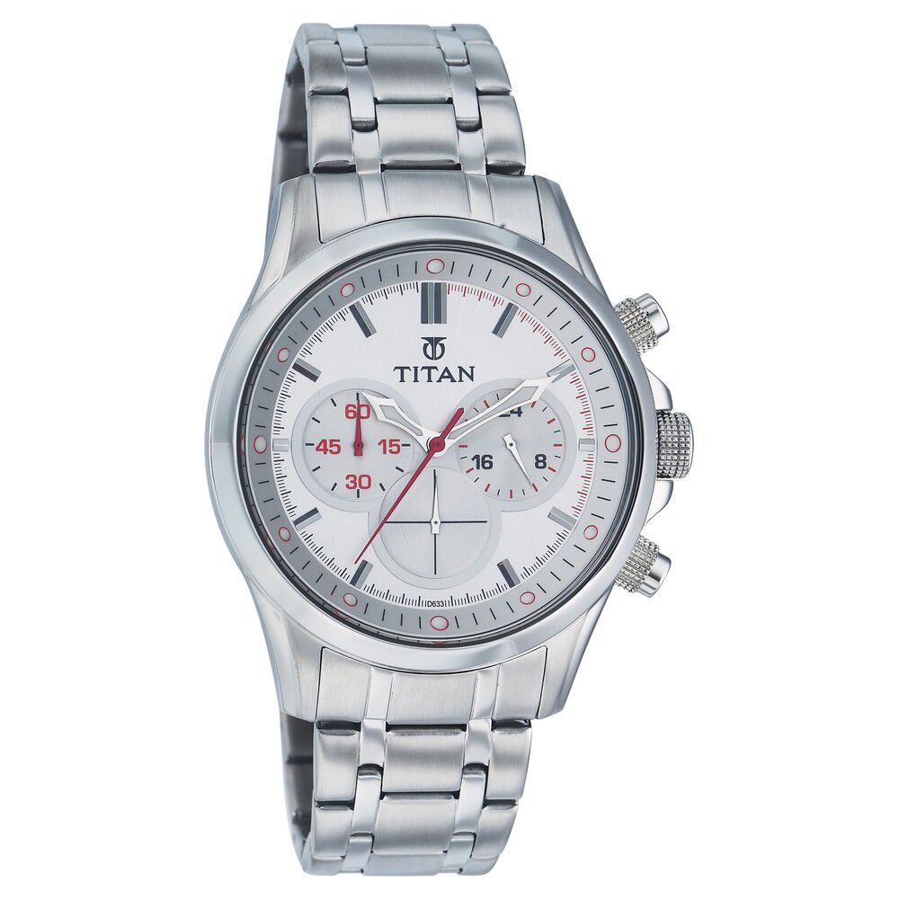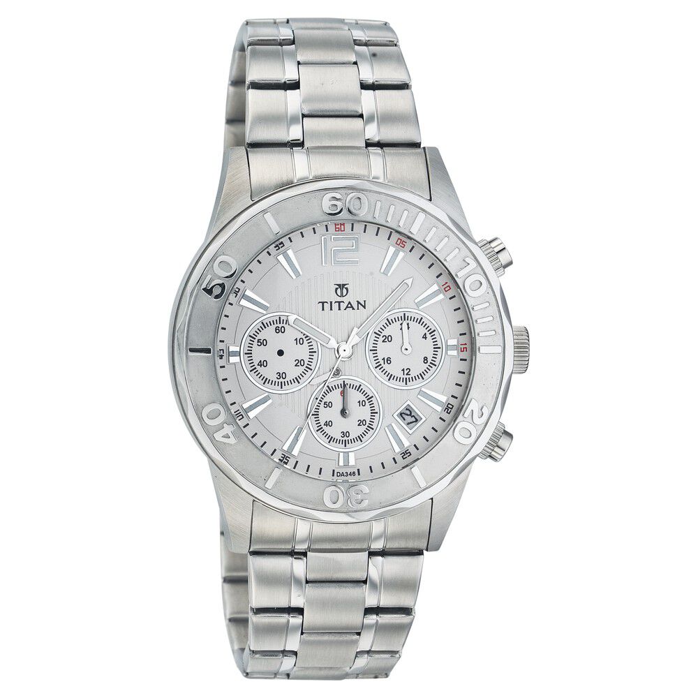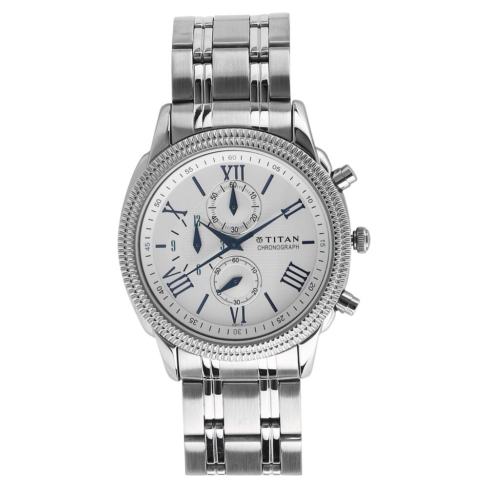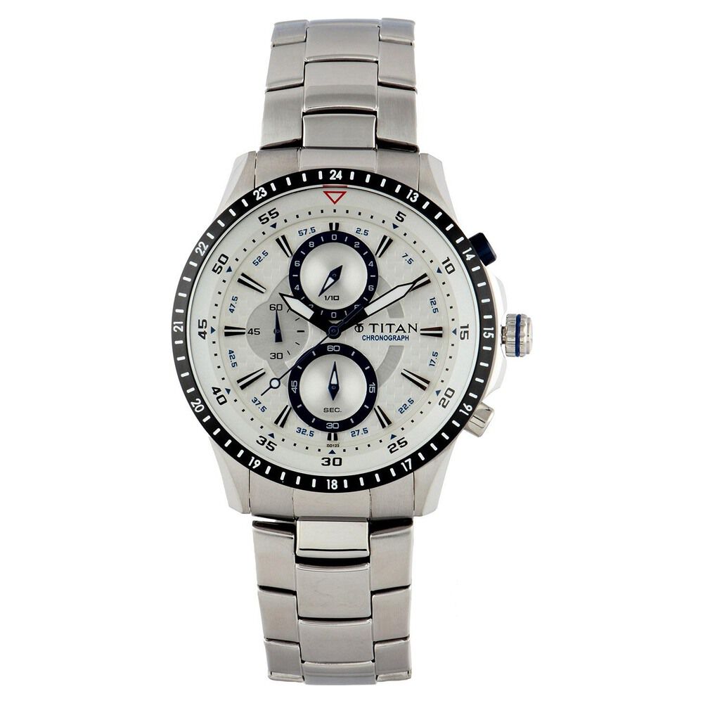 Titan SteelWhite Dial Chronograph Metal Strap watch for Men-ND1489SM01