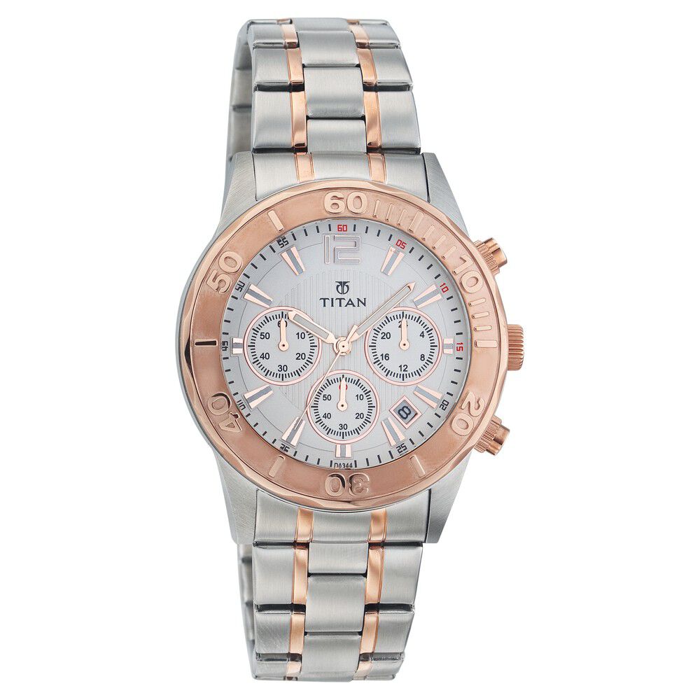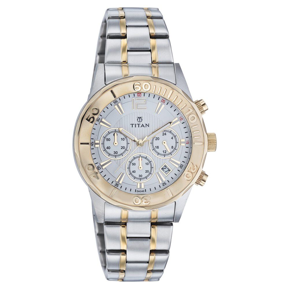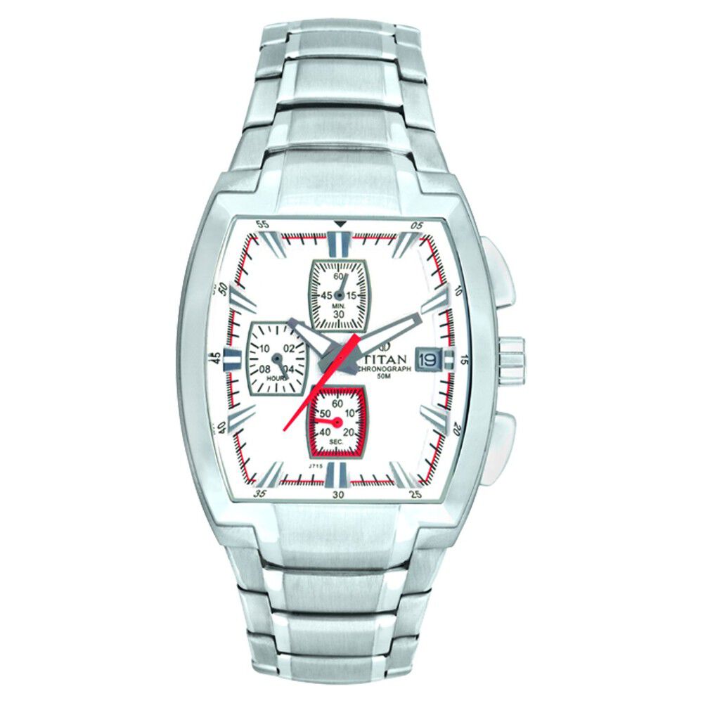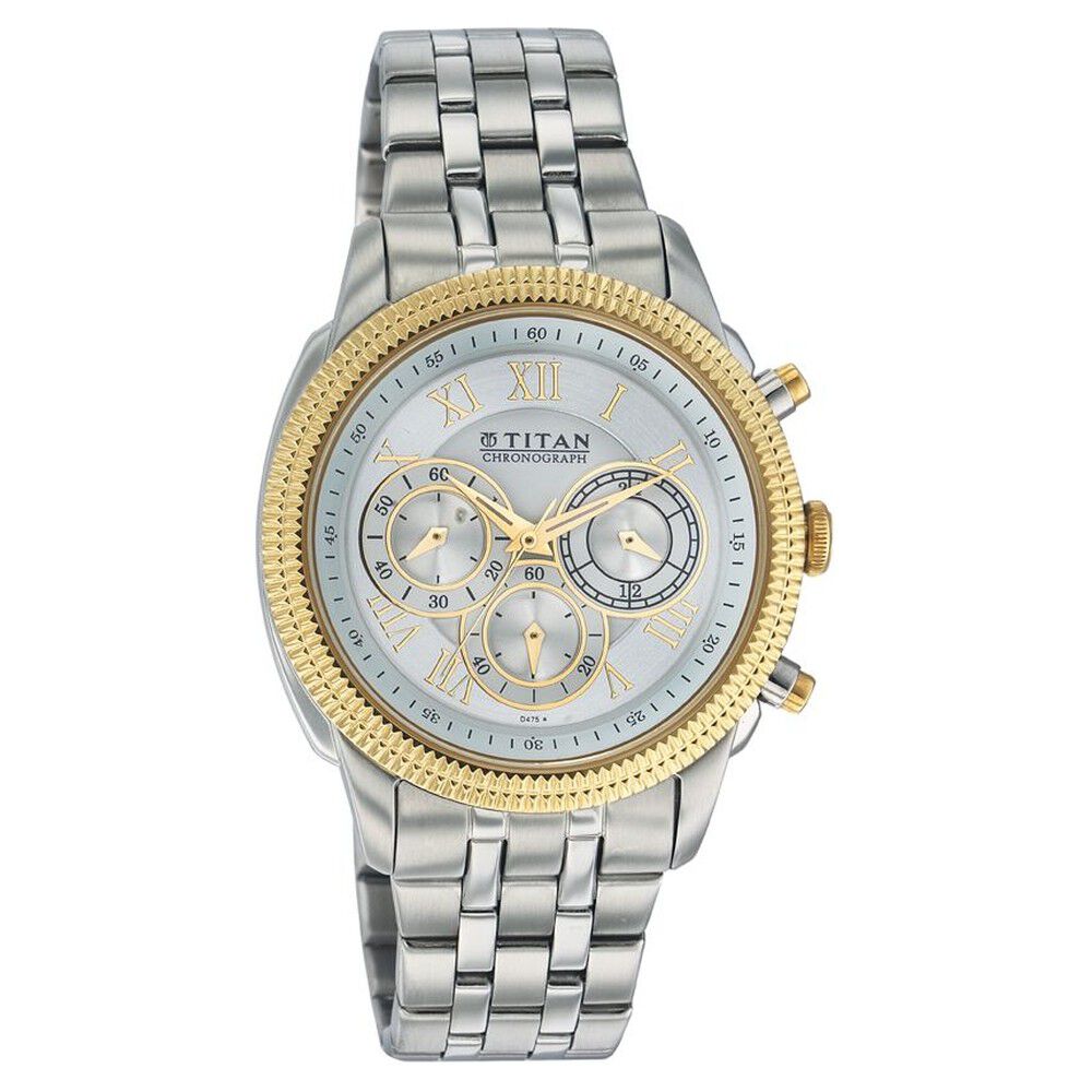 Titan SteelWhite Dial Chronograph Metal Strap watch for Men-ND1489SM01